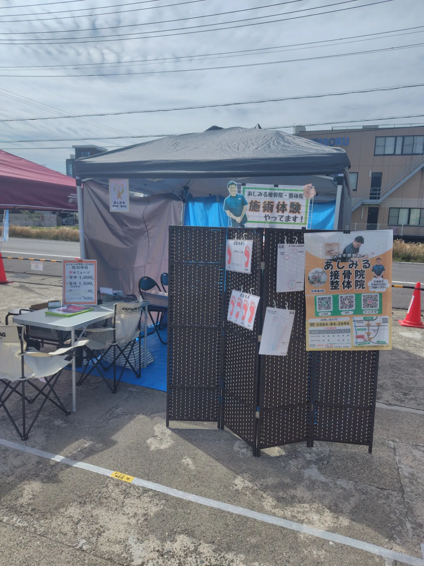 あしみる接骨院・整体院も昨年の秋に続いて出店させていただき10名の来場者の方に施術や、足型測定を受けてもらいました。